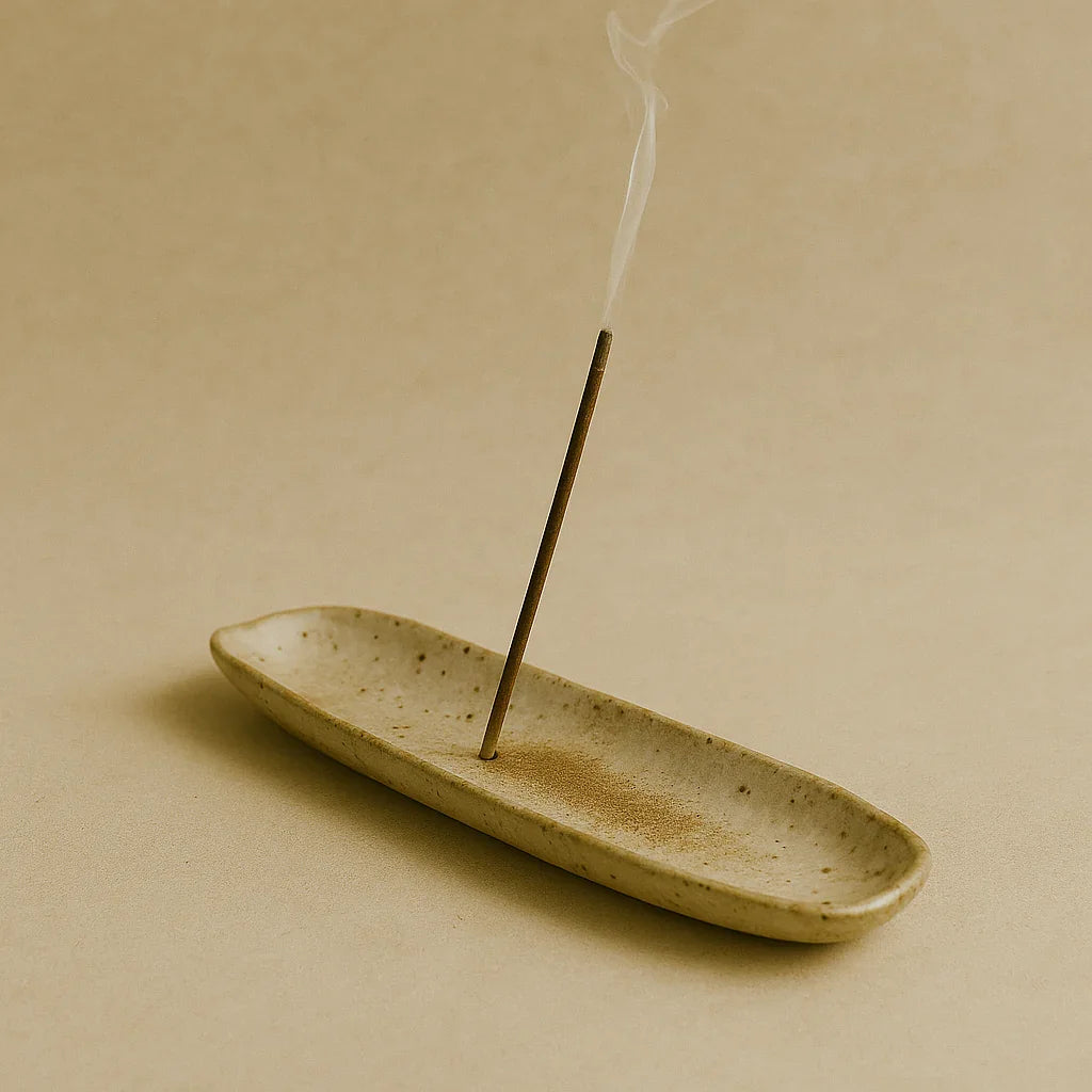 Nami (ola, en japonés) es un porta incienso alargado, hecho a mano en cerámica con forma irregular y acabado mate. Inspirado en la fluidez del mar y la calma estética del wabi-sabi, su diseño minimalista y elegante permite contener la ceniza y sostener el incienso con armonía.